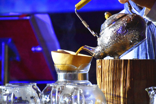 随着第一款茶倒入银壶,全场响起了极具穿透力的鼓声,节奏明朗、时而深沉、时而轻快的鼓韵揭开了此次茶会的序幕。