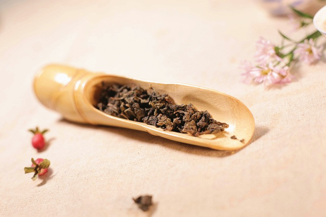 桂花属常绿乔木,其芳香高雅,香气幽远,久闻不厌,有“九里香”之称。桂花品种又分金桂、银桂、丹桂及四季桂四种,以“金桂”花香最浓。此款茶品选用气味清香的特级安溪铁观音和优质金桂花为原料,茶中有金黄色花瓣稀疏点缀。