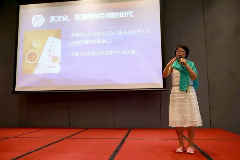 金万鸿国际集团市场总监杨彩霞女士(茶友枫香),分析了茶馆经济发展前景。强调了百年万鸿茶馆计划是走在全球“分享经济”和“体验经济”趋势中,最完美和具有无限可能的发展方式。