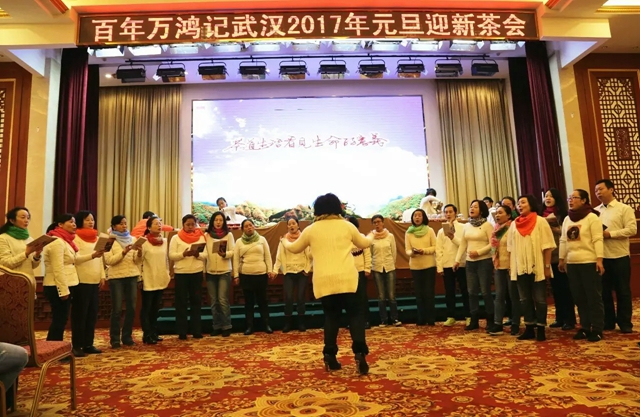 为庆祝武汉茶馆的繁盛,百年万鸿记旗下武汉“百年万鸿记茶馆”联手举办了以“茶道生活看见生命的意义”为主题的2017元旦迎新茶会。来自武汉三镇和湖北省内部分地区的新、老茶友欢聚一堂,带着迎接新年喜乐的心载歌载舞,欢庆2016年茶道生活的丰盛,迎接充满希望的2017年。
